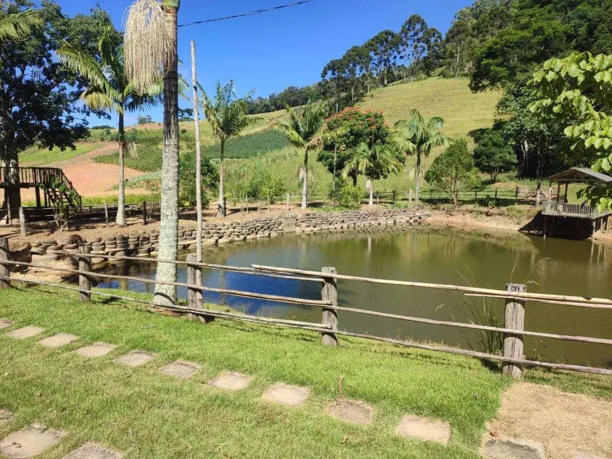 A natureza pulsa em cada canto: são 2 nascentes, represa com muitos peixes, área com pés de pinheiro e um orquidário encantador.